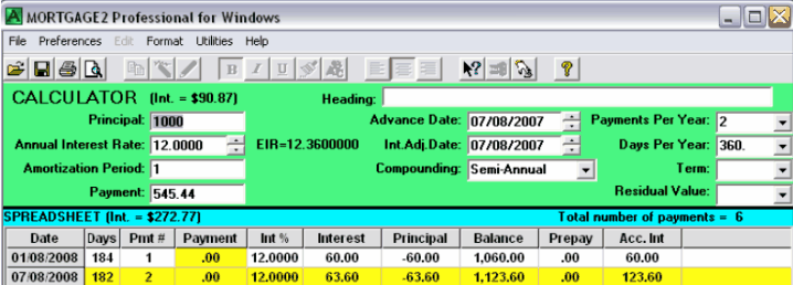 If the interest rate for a loan was quoted as an effective interest rate (EIR) there would be less confusion in loan shopping! The EIR is the actual interest rate you would pay yourself at the end of the year if you lent the money to yourself. You are borrowing the money from a lender and it is assumed that the lender re-lends your payments out as he receives them at the same interest rate. Its an ideal calculation however it's a consistent reference point for comparing loans. You would not need to be concerned with the inconvenience of compounding! Before you can understand the advantage of using the EIR, you must understand the meaning of the word, “compounding”. Compounding does not mean calculation! If you make all loan payments on time the interest you pay on your loan is not compounded! As a related issue, the mathematical formulas, calculations and analysis of mortgages and loans are identical. The difference between a mortgage and a loan in Canada is the numerical value of the interest factor that is used to calculate interest due at the end of the payment period. The type of compounding utilized influences the numerical value of the interest factor. A Canadian mortgage is a specific name for a loan that utilizes semi-annual compounding. From this point on, only the word loan will be used throughout the discussion. This story could have happened 100 years ago. A farmer borrowed $1000 to purchase seeds to plant a crop. Most loans to farmers then were on a six month basis. The farmer agreed to pay back the $1000 loan plus interest after 6 months. The lender told him the annual interest rate was 12%. They both agreed and parted ways. Six months later, the farmer’s car broke down on the way to the bank to pay back his loan. The banker tells the farmer he owes the $1000 plus $60 in interest. The farmer asked his banker if he could continue the loan and not pay ANY money on the loan for another six months, because his car needed repairing. The banker agreed. 6% for 6 months is 0.06 as a decimal 0.06 x $1000 = $60 If the farmer had the money he would have paid the banker the $1000 principal he borrowed plus the $60 in interest for a total of $1060. The 0.06 is the interest factor