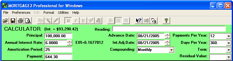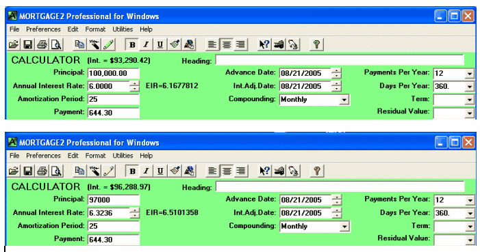 Subtract the $3000 from the $100000 and recalculate the Annual Interest Rate for a $97,000 loan by either left clicking on Annual Interest Rate prompt or left clicking on the Annual Interest Rate box and then