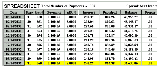 Never, never skip payments, especially at the beginning of a mortgage (or loan) unless absolutely necessary. Below is an example of the extra cost you would pay if you skipped the first three payments of a mortgage. If the first three payments were missed and the interest rate remained the same over the 30 years your balance owing after 30 years would be $35,628.25 instead of zero. Imagine the surprise if you did not have an amortization schedule and blindly paid monthly payments for thirty years. A yearly statement telling you how much principal and how much interest you paid is not very informative. Bottom line, skipping the first three payments in the example below costs you an extra $35,633.06 over the thirty years! |