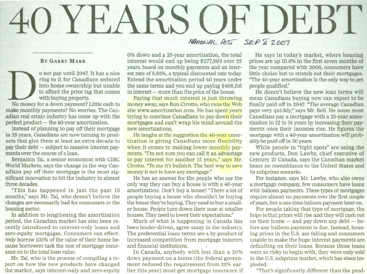 amortizationdotcom Mortgage Calculator for iPhone Introduction to Canadian and American Mortgages Seminar on prepaying principal (Part A) Seminar on prepaying principal (Part B) Global TV Interview regarding 40 Year Mortgages