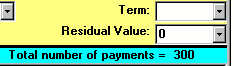 The Lease Buyback combo box is displayed by default each time the program is started. If you wish to turn it off go to the UTILITIES MENU and click the Leasing Mode off. By clicking the down arrow of the Lease Buyback combo box you can click 10%, 15%, 20%, 25% and 30%. If you had a loan of $30,000 amortized for 4 years and you clicked on the 10% Lease Buyback choice, the balance owing after four years would be $3,000 (within one dollar). Clicking on the 10% would immediately lower the payment and recalculate the schedule (lengthening it) and show the balance owing (also called "residual" or "buyback" in financial circles) at payment 48 to be $3,000. If you had wanted the residual to be $2,710 at the end of the four years you would just type in 2710 in to the combo box without the percent sign.