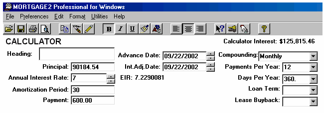 BACK TO THE WEEKLY PAYMENT MORTGAGE If you required a 30 year mortgage of $90,184.54 and the interest rates were 7% and the lender was using monthly compounding, the monthly payments would be $600 for the next 30 years (assuming the rate is 7% over the 30 years). If you were experienced at using a financial calculator you could calculate the weekly payment required to amortize the $90,184.54 at 7%, monthly compounding, over the next 30 years. The weekly payment would be $137.88 for the next 30 years. This regular weekly payment is the value that is derived from any financial calculator. In 1984 the first Canadian lender to offer a weekly payment mortgage also offered variations in the payment amount. This lender arbitrarily coined two weekly payment terms, non accelerated weekly and accelerated weekly. The regular monthly payment based upon the full amortization period of 30 years is calculated and used as the reference point. In this example, $600 per month. The non accelerated weekly is the yearly cash flow based upon twelve $600 monthly payment divided by 52 payments (600 x 12/52). The accelerated weekly is the yearly cash flow based upon thirteen $600 monthly payment divided by 52 payments (600 x 13/52). None of the financial calculators will directly calculate these two weekly payments because they have nothing to do with the amortization formulas. The screen below shows the difference in savings due to the 3 types of weekly payments. Follow this procedure and you cannot go wrong! Always ask your lender to calculate the monthly payment first ($600). Divide it by four (13/52=1/4) for the accelerated weekly. Divide it by 4.3333 (12/52 = 4 1/3)for the non accelerated. The regular weekly payment (as per the calculator) of $137.88 save you $899.92 over the full amortization period of 30 years. The non accelerated weekly saves you $3,002.91 over the 29.58 years. This is called free money! $138.46 taken out of your chequing account each week is the same yearly cash flow as $600 a month being taken out of your chequing account. You save $3,002.91 over the next 29.58 years for doing nothing. The lender has taken the same total amount of money from your account at the end of the year the only difference is the lender takes it out weekly. The accelerated weekly of $150 saves you $32,622 over the next 23.51 years because it is more frequent and a larger payment. In fact the bigger you make the weekly payment the more you save and the faster you pay off the loan (the amortization period becomes smaller). In this example, if you increased the weekly payment to $200 the mortgage would be paid off in 13.3 years and you would save $77,594 compared to the regular monthly payment of $600. The above explanation is 100% applicable for both American and Canadian mortgages. The only difference between an American and a Canadian mortgage is American lenders use monthly compounding and Canadian lenders use semi-annual compounding. The difference in compounding effects only the value of the interest factor used to calculate the interest due at the end of each payment period. All the algebraic equations are identical. Anyone that tells you differently is wrongly informed or lying. Canadian mortgages traditionally are amortized for 25 years, whereas American mortgages are usually amortized for 30 years. You can ask for a smaller amortization period however, the salary qualifications usually force most people to chose a 25 or 30 year amortization period. Some lenders in the USA are starting to offer biweekly payment mortgages. At low interest rates the $300 accelerated biweekly payment plan saves you $32,311.07 almost as much as a the $150 accelerated weekly payment plan which saves you $32,621.96 as can be see from the screen capture below. Use any of the MORTGAGE2 software programs (or ask an accountant) to verify the biweekly payment schedule before signing on the dotted line. Ask for an amortization schedule, don't leave the Bank without one. If your lender cannot or will not provide you with an amortization schedule, then change lenders. Click on, more information, if you require further justification for having an amortization schedule. For new home buyers, never, never skip payments early on in the mortgage. Some lenders allow new home owners to skip, for example, the first three monthly payments, in order to help them buy a new stove and fridge. Don't do it and here is why! In this day and age of computers and software there is absolutely no excuse for any lender not being able to provide an amortization schedule to a borrower.