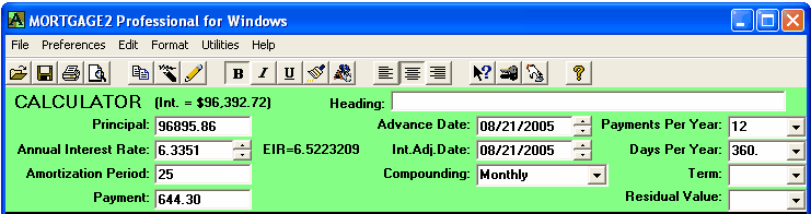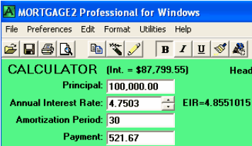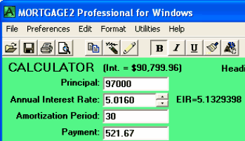 Subtract the $3000 from the $100000 and recalculate the Annual Interest Rate for a $97,000 loan by either left clicking on Annual Interest Rate prompt or left clicking on the Annual Interest Rate box and then