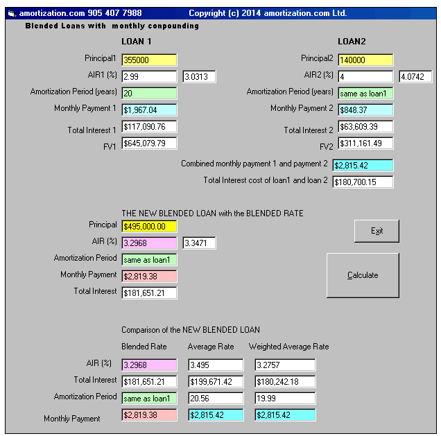Are you contemplating combining two loans for the convenience of tracking one monthly payment? If the answer is yes, you will want to know what interest rate will give you the borrower the best financial advantage. Before you can appreciate the viability of blending two loans it will help to understand the phrase, .. deemed reinvestment. When you put money in a GIC the Bank will pay you a guaranteed interest on your money at the end of the year. If the face value of your GIC plus the interest is reinvested at the end of the year in another GIC for another year at the same initial rate and you continue renewing at the same interest rate this is called deemed reinvestment and you are receiving compound interest. The interest rate or return at the end of the second year is also called the effective interest rate you are receiving. This same concept applies for lending and investing. It is also used to evaluate and compare loans and mortgages but the time period is one month for monthly payment loans or mortgages. It is difficult to get a GIC that’s pays interest monthly instead of yearly and if you do, the rate is usually lower. Now pertaining to mortgages, it is also difficult for a lender to reinvest each monthly mortgage payment as it is received from you thus the deemed reinvestment calculation is more of an ideal scenario calculation with respect to loans and mortgages. Loans and mortgages are calculated exactly the same way, the only difference being the monthly interest factor, but I digress! Suppose you borrowed $1000 for one year at an annual interest rate of 12% the monthly payments would be $88.85. If you were in possession of an amortization schedule you would see that at the end of the year the schedule shows total interest you paid to the lender was $66.18 not $120 as you might expect (0.12 x 1000 = 120). The lenders deemed reinvestment calculation predicts that if he reinvests each monthly payment of $88.85 at the same interest rate he would receive ideally $126.83 not $120 due to compounding. In mathematical jargon, a 12% annual interest rate charged on your $1000 loan is worth to the lender, 12 months in the future, $1,126.83 and that is called the future value (FV). It is a common practice to calculate the future value (FV) of loans or mortgages for comparison purposes. Now let me use an example from a major Canadian newspaper, in which a “financial planner” advises a client. The planner said, the client by combing his line of credit with his mortgage will minimize interest costs without any mention of the interest rate of the blended loan. How the lender calculates the blended loan rate will determine the costs/savings .The example above indicates three methods, two are obvious and one not so obvious to a novice of mathematics of how to arrive at the new blended rate for the blended loan. BLENDED RATE AVERAGE RATE WEIGHTED AVERAGE RATE I will end by stating, a financial person dealing with mortgages at one of the big Banks in Canada would not give me what rate their Bank would charge. The reason was this Bank only does this for non hypothetical loans and only for their clients (articles written in the newspaper are hypothetical I guess). So much for transparency and Financial Literacy in Banking Industry!