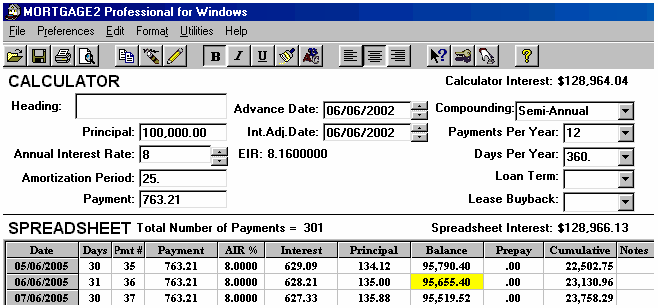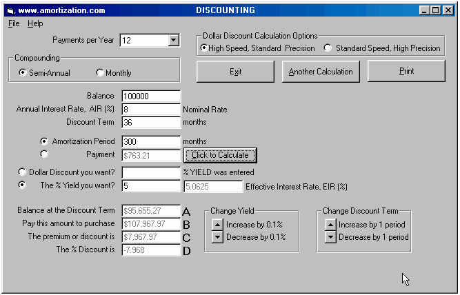 IRD MISINFORMATION An article appeared in the November 2002 issue of a well known North American magazine, "Pay Down Your Mortgage Fast". For the most part the article was well written and the journalist was well intentioned. Her treatment of Interest Rate Differentials left a lot to be desired. She was wrong in her analysis and conclusion regarding the IRD or 3 month penalty. The fact that she used the 3 month penalty which is greater than the IRD in this example makes her incorrect conclusion, paying the "penalty" is advantageous, even more ludicrous! In plain English, a $100,000 mortgage is being discounted at 8% down to 5% for the next 36 months. Mortgage brokers do this calculation every day. It is not rocket science! The Interest Rate Differential, IRD, ("C", a premium in this example) is $7,967.97. A third party person could pay a premium of $107,967.97 for this $100,000 mortgage and would receive 36 monthly payments of $763.21 resulting in a yield a 5% mortgage. The simple way to view this is IRD example is as follows. After paying the IRD or premium, in order to get the 5% interest rate, the 36 monthly payments of $763.21 will get you to the same point in time and the same balance ($95,655) owing as shown by the two amortization schedules below. One can either purchase a mortgage at a discount in order to get a higher yield or one can purchase a mortgage at a premium (the premium in this example is called the IRD) and therefore get a lower yield. It is worth repeating, .. paying the premium (the IRD in this example) will not save you in interest costs. In this example, think of it as a fork in the road. You owe $100,000 and have a choice of an 8% path or a 5% path plus a toll. The 8% road costs you nothing to get to the 36 month point and then you owe $95,655.40 where as the 5% road costs you an upfront toll of $7,967.97 and 36 months later you are at the same point as the 8% road and owe the same balance of $95,655. Obviously you are using the same monthly payment in either path. One must always compare identical cash flows in analysis. The well intentioned author was correct in saying, . most lenders in Canada will charge the greater of the two "penalties", however lenders do make errors and sometimes in the borrowers favour. It is always wise to verify the "penalty" with a professional mortgage broker. Before making a decision like this one, consult a professional mortgage broker, that is their business!