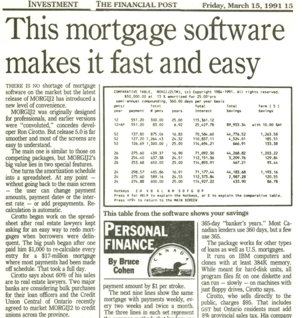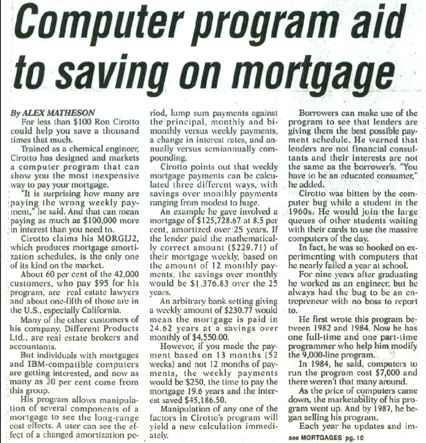 COMPUTER PROGRAM AID TO SAVING ON MORTGAGE RON HOMES IN ON MORTGAGE-ANALYSIS MARKET THIS MORTGAGE SOFTWARE MAKES IT FAST AND EASY NEW MORTGAGES MAKE SOFTWARE WORTH THE PRICE REFINANCE OR STAND PAT? TERMS ARE KEY