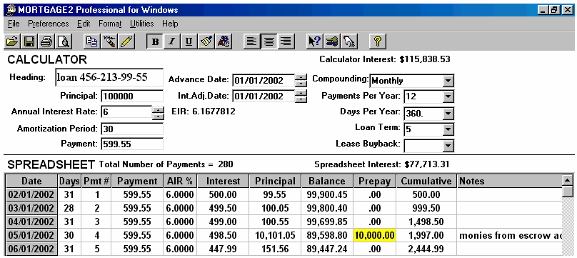 Let us assume you to print an amortization schedule for a client 456-213-99-55. You enter the information as shown below; and you decide to print it in ARIAL font at 10 point as shown below. |