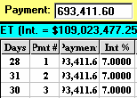 AMERICAN USERS: By clicking the down arrow of the Payments per Year combo box you can click on the payment frequency and immediately see the impact on the payment in the payment box and the total interest on the green status line.