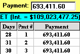 The Lease Buyback combo box is displayed by default each time the program is started. If you wish to turn it off go to the UTILITIES MENU and click the Leasing Mode off. By clicking the down arrow of the Lease Buyback combo box you can click 10%, 15%, 20%, 25% and 30%. If you had a loan of $30,000 amortized for 4 years and you clicked on the 10% Lease Buyback choice, the balance owing after four years would be $3,000 (within one dollar). Clicking on the 10% would immediately lower the payment and recalculate the schedule (lengthening it) and show the balance owing (also called "residual" or "buyback" in financial circles) at payment 48 to be $3,000. If you had wanted the residual to be $2,710 at the end of the four years you would just type in 2710 in to the combo box without the percent sign.